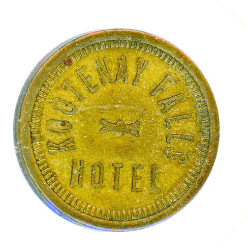 Brass trade token from the Kootenay Falls Hotel. (Greg Nesteroff collection)